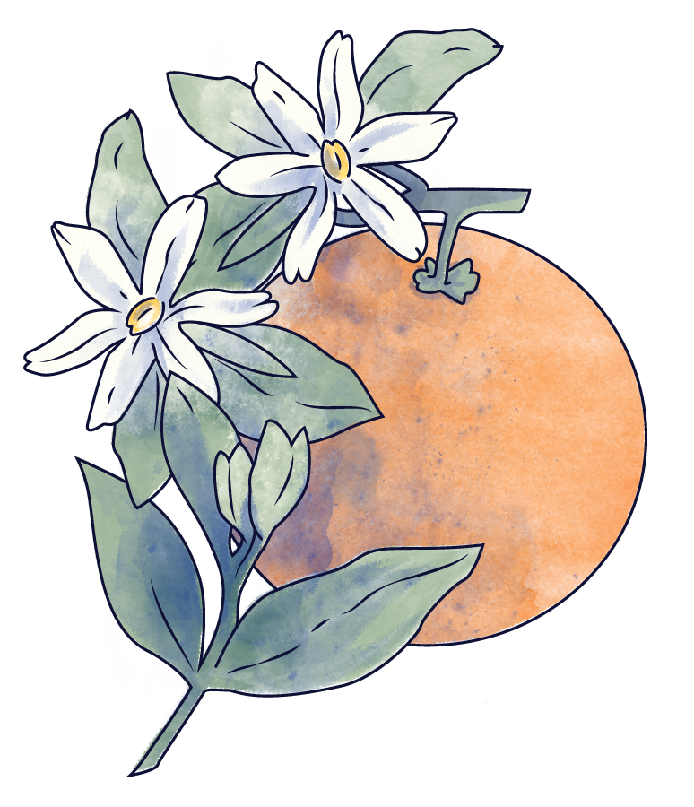 I went back to the sketchbook, drew the orange blossoms from reference, and let the composition come from the illustration instead of forcing the illustration into a logo grid. The lens became a quiet anchor in the back of the composition rather than the loudest element on the page.