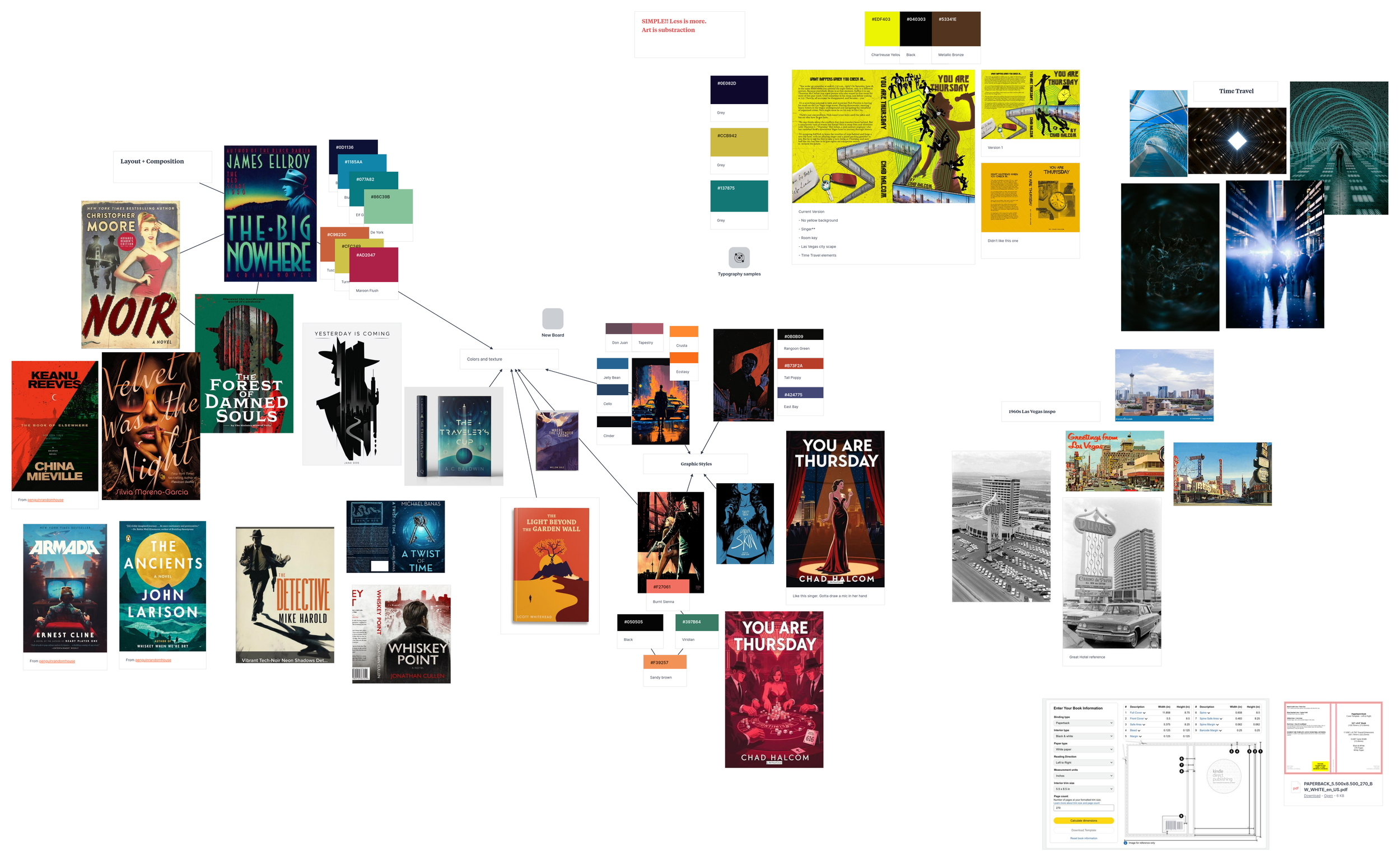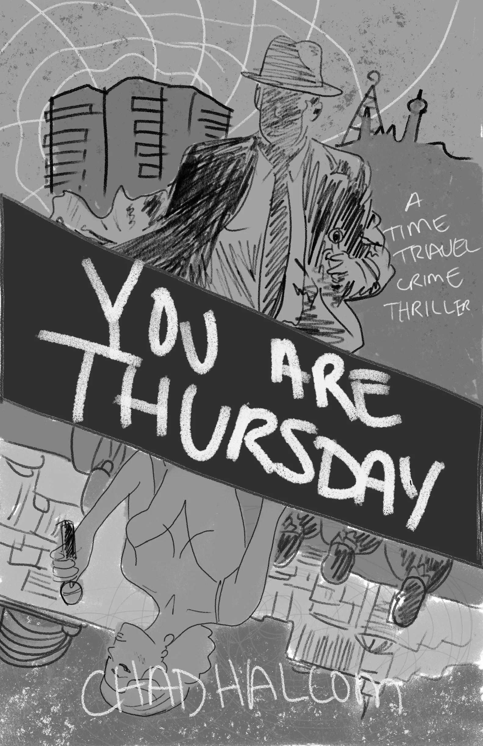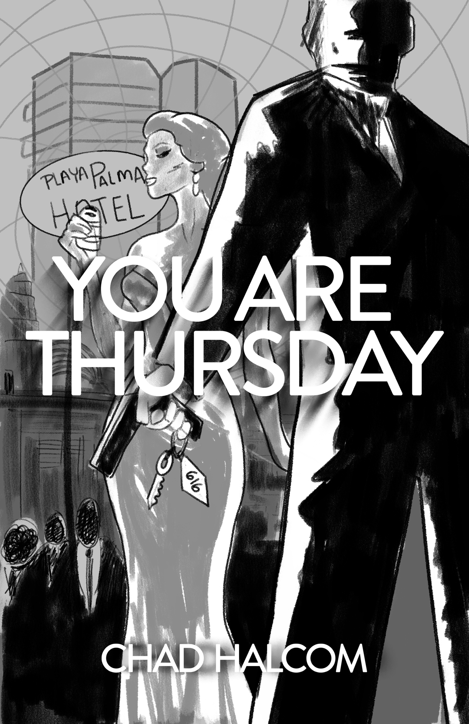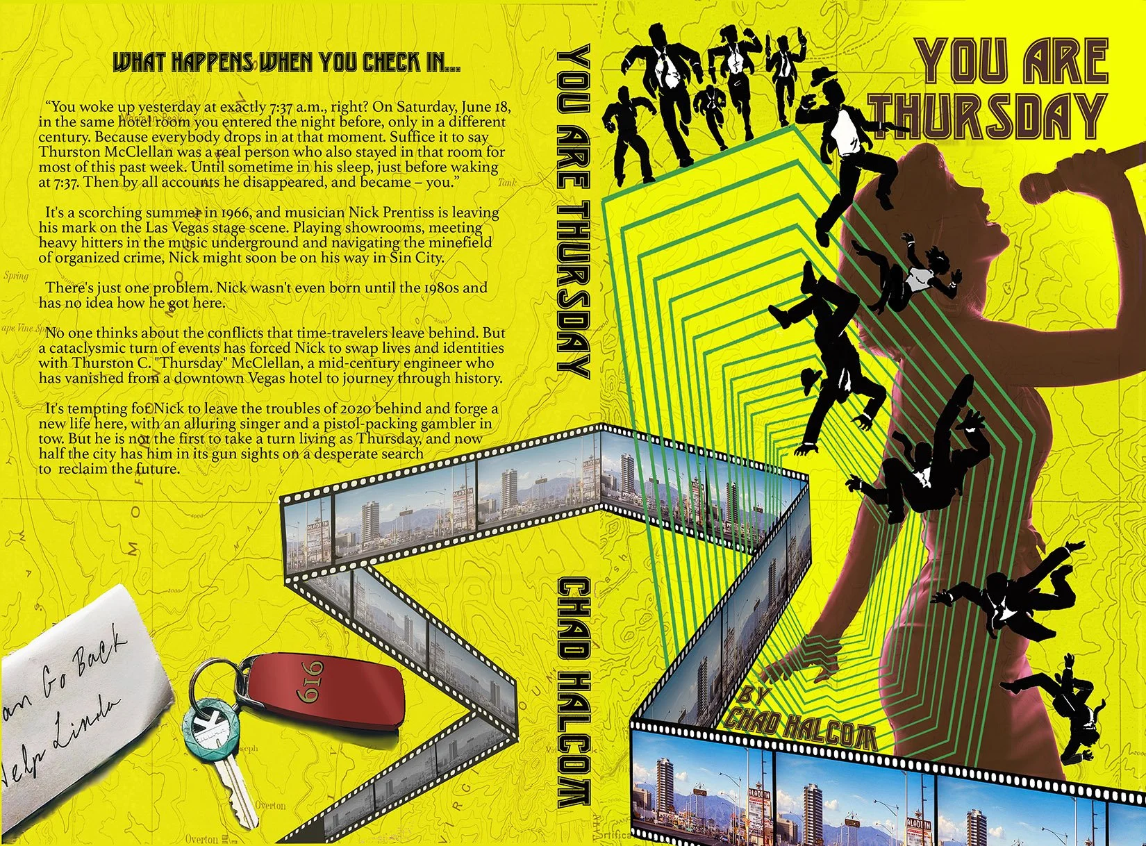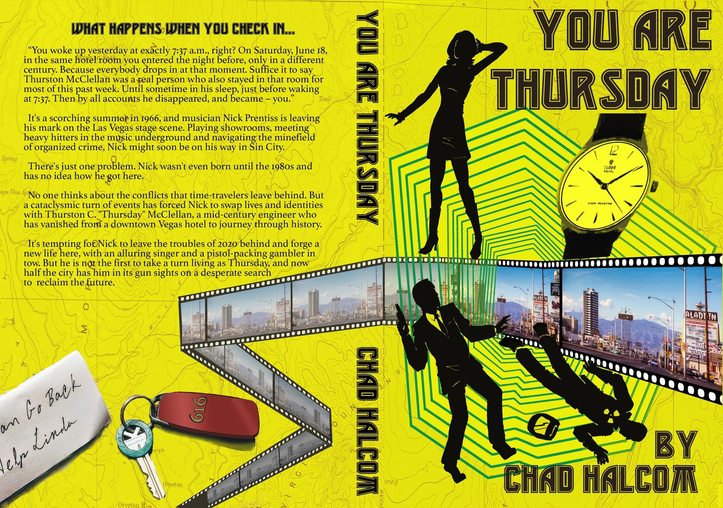 You Are Thursday is a time travel crime thriller by author Chad Halcom, set against the glamour and danger of 1960s Las Vegas. Halcom came to me with an existing cover that wasn't landing the right tone. The goal was a ground-up redesign that communicated the genre and era immediately, while capturing something more specific: the feeling of a world that looks familiar but is slightly, unsettlingly wrong.